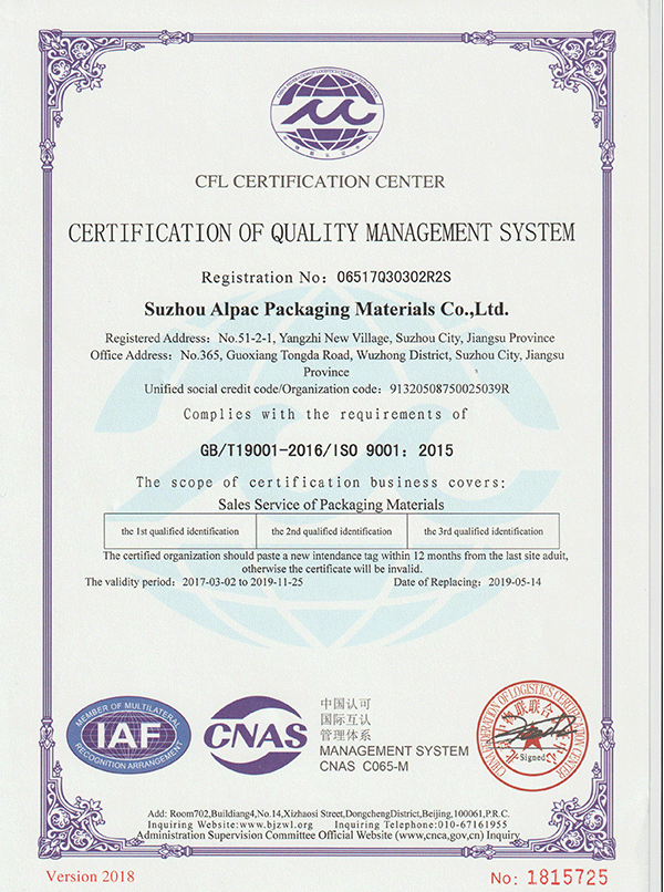 蘇州市奧柏包裝材料有限公司,成立于2001年4月,辦公地點現已由園 區蘇虹西路蘇春工業坊幾經搬遷至蘇州市吳中區郭巷通達路365號。 蘇州市奧柏包裝材料有限公司是以纏繞膜入口分切加工標準尺寸膜裝箱銷售,后陸續完善增強生產銷售規模,幫助客戶解決整體包裝設計,經 濟合理運用包裝耗材。公司至今包裝系列產品已經達到十大系列五十余種品種之多。公司通過多年生產銷售經歷,希望更多學習積 累行業經驗,服務于廣大客戶群體。